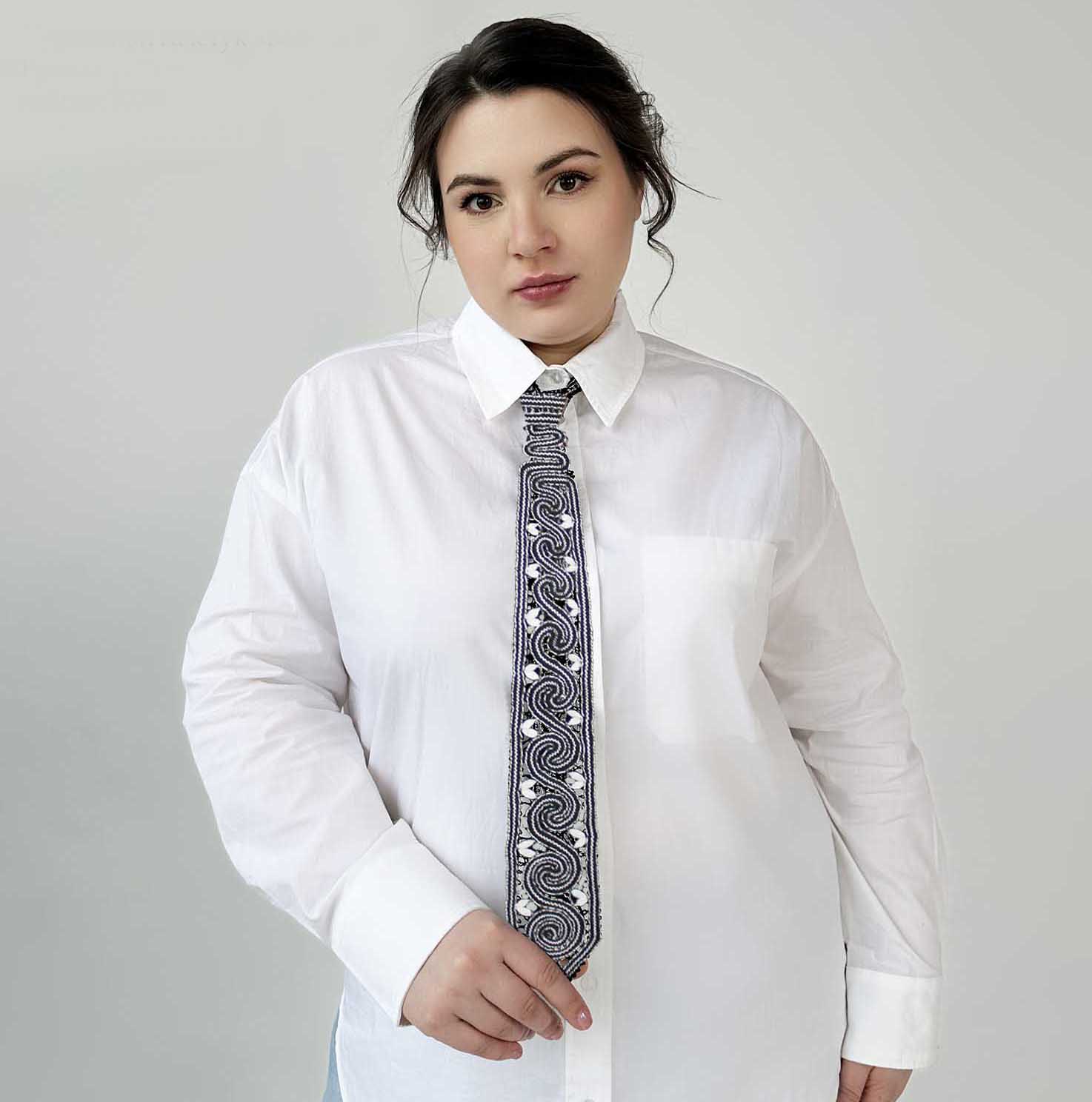 Прелестный аксессуар к женскому туалету - кружевной галстук "Волна". Вы будете выглядеть женственно и делово.