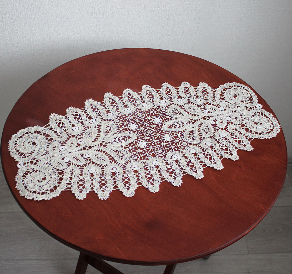 Красивая, уютная кружевная дорожка украсит интерьер дома хорошей хозяйки, ценителей настоящей русской культуры.